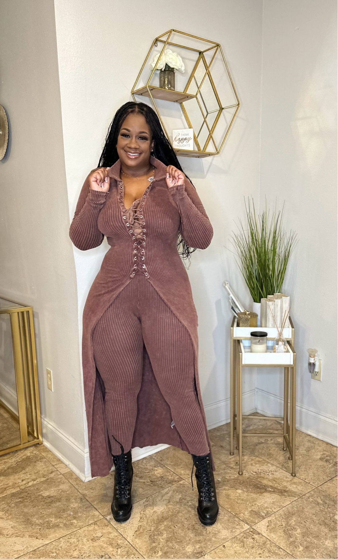 Mineral wash lace-up cardigan legging set/ Chocolate