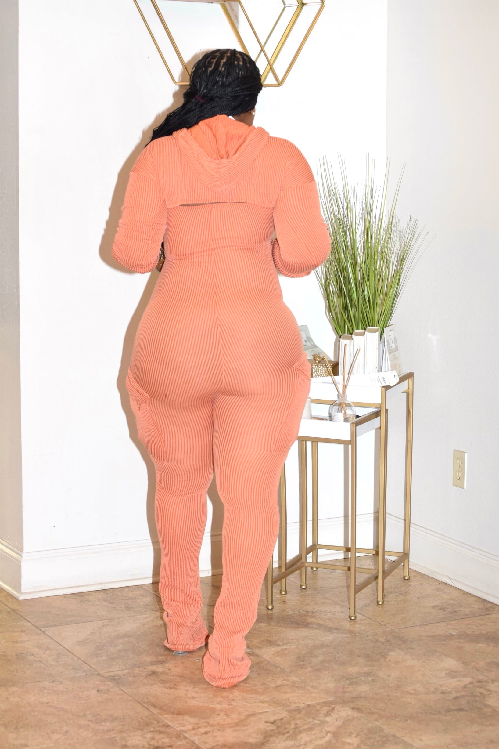 POCKET DETAIL JUMPSUIT WITH HOODED TOP SET (Sienna)